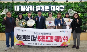 대전 대덕구(구청장 최충규)는 지난 22일 서울 백범김구기념관 컨벤션홀에서 열린 ‘2024 제12회 대한민국축제콘텐츠대상’시상식에서 콘텐츠축제 부문 특별상을 받았다고 밝혔다.