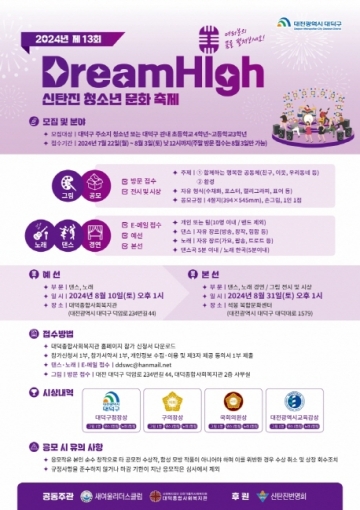 대전광역시 대덕구는 청소년들의 창의력과 열정을 발휘할 수 있는 제 13회 신탄진 청소년 문화 축제 "DreamHigh"를 개최한다고 발표했다.