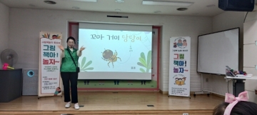 행사는 먼저 ‘꼬마거미당당이’ 그림책 동영상을 함께 감상하는 것으로 시작되었으며, 이후 길명자 대표가 다양한 목소리와 생동감 있는 설명을 통해 어린이들에게 동화 내용을 재미있게 전달했다.