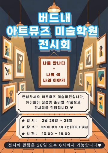 버드내아파트 상가 3층에 위치한 ‘아트뮤즈 미술학원(원장 김혜경)’이 매년 이어오고 있는 정기 전시회를 올해도 개최한다. 이번 전시는 오는 2월 26일부터 28일까지 3일간 대전 버드내 상가 1층에서 열린다.